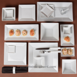 FORME CARRE COMPOSEE DE 10 TAILLES D ASSIETTES. SALADIERS. COUPELLES/PORCELAINE ROBUSTE/