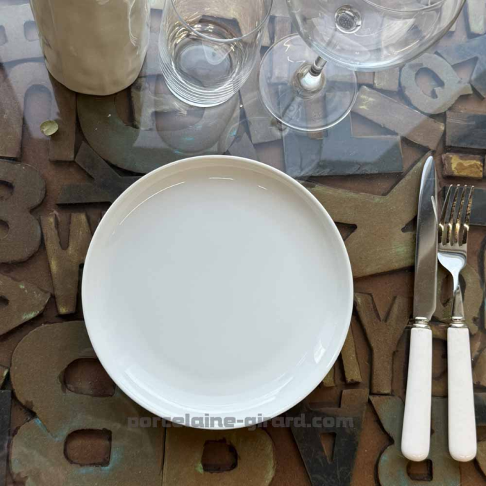 Assiette ronde blanche en porcelaine de la collection Elisa, au design épuré et intemporel. Sa finition lisse et élégante met en valeur toutes vos préparations, du quotidien aux grandes occasions. Résistante et facile à entretenir, elle allie esthétique et praticité.