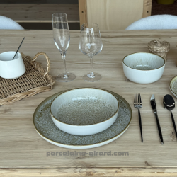 Bol en grès moutarde de la collection Cali. Son format (Ø14,5 cm – H 6,7 cm) est idéal pour les soupes, salades ou desserts. Sa finition texturée et sa couleur chaleureuse apportent du caractère à votre table. Parfait pour un usage quotidien ou professionnel.