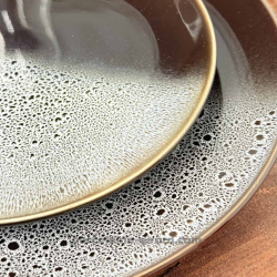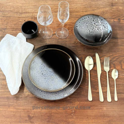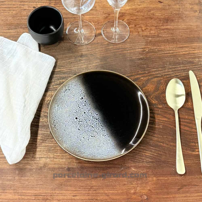 Découvrez notre collection d’assiettes en grès noir, sublimée par un relief martelé et de délicats reflets blancs. Chaque pièce allie authenticité et modernité, offrant une présentation unique et élégante. Idéales pour mettre en valeur vos créations culinaires, elles apportent caractère, texture et raffinement à votre table.