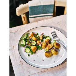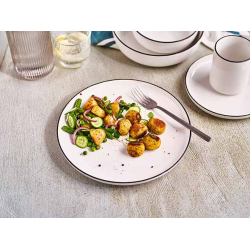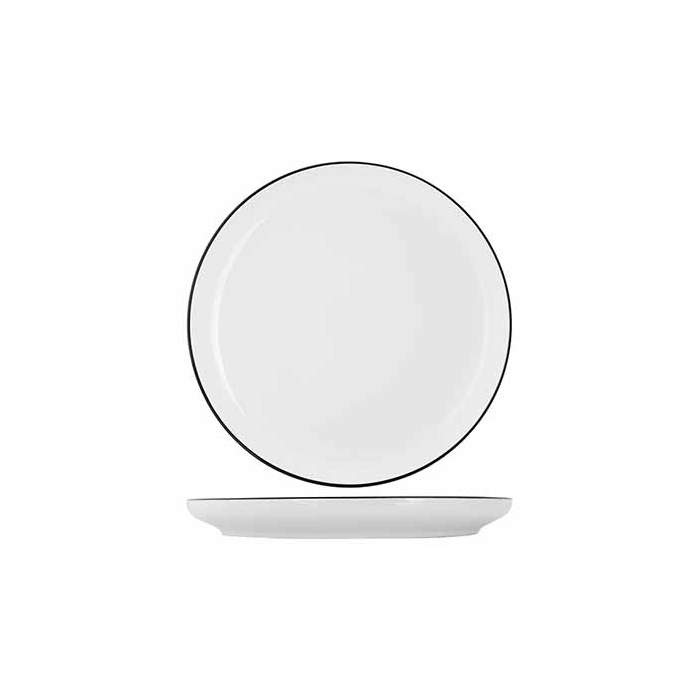 Assiette plate dîner – Collection Agathe Inspirée de la vaisselle emblématique de nos cantines, la collection Agathe revisite avec élégance les codes du quotidien. Son design blanc et noir, sobre et graphique, évoque les repas d’antan et les célèbres timbales tout en s’inscrivant dans une esthétique contemporaine. Conçue en porcelaine, cette assiette plate ronde est à la fois résistante et intemporelle, idéale pour un usage quotidien. Elle met en valeur tous types de plats et s’intègre parfaitement dans un service de table au style authentique et réconfortant.