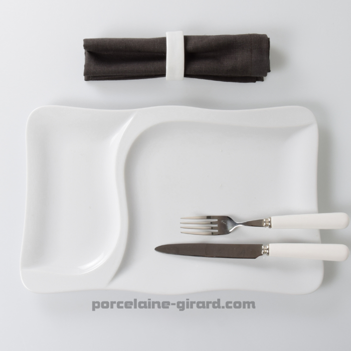 La légèreté et la modernité de la ligne ondulée de cette assiette mettent en valeur les mets les plus fins. Pour une table digne d'un restaurant étoilé. /Elle possède 2 compartiments. Vous pourrez ainsi varier la présentation de vos plats.